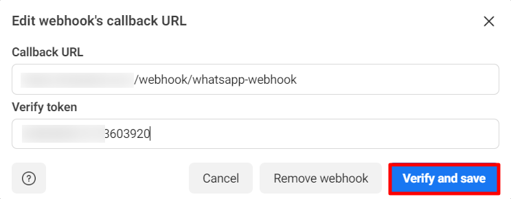 Then paste the Webhook Callback URL and verify token in the callback URL and verify token fields respectively. Now click on the verify and save button.